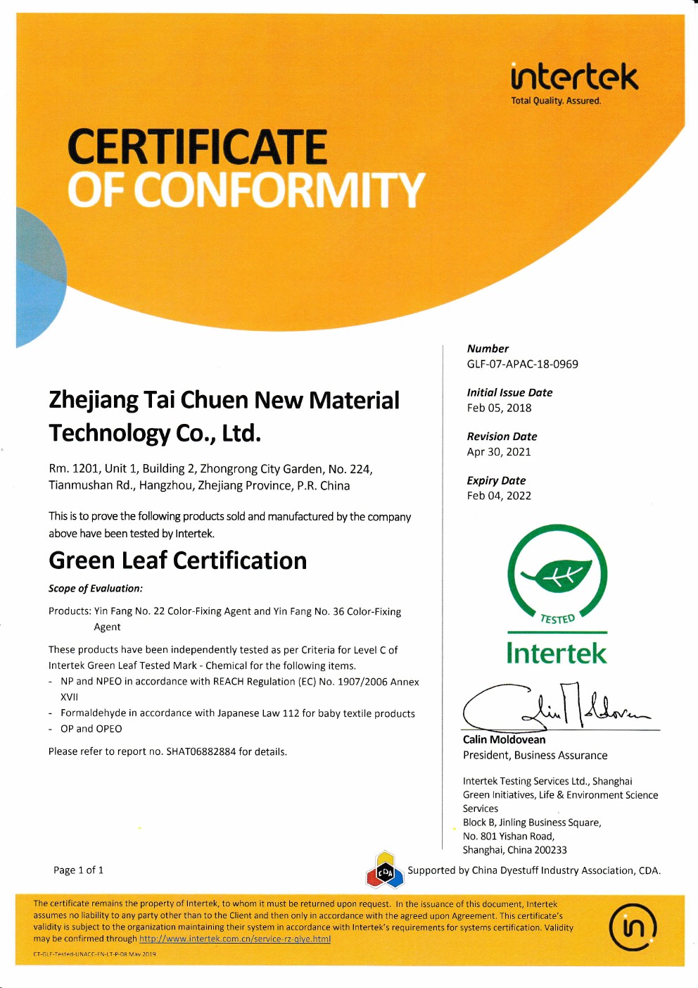 公司相關(guān)部分產(chǎn)品擁有Intertek綠色證書。