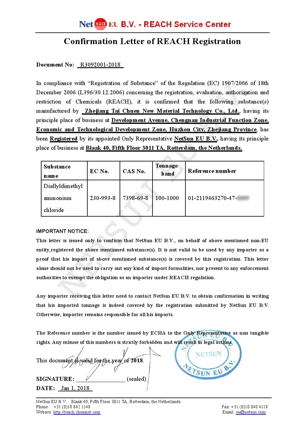 • R3092001-2018 Zhejiang Tai Chuen REACH