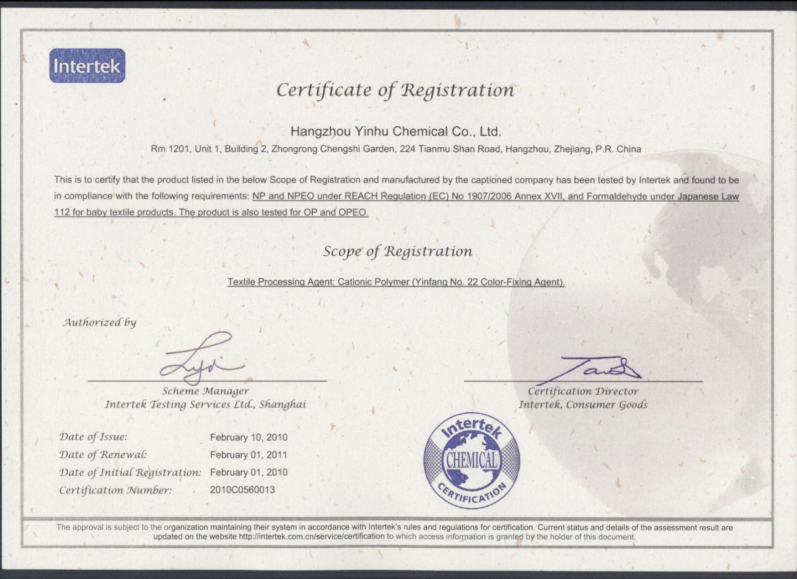 Hangzhou Yinhu Chemical Co., Ltd.